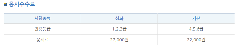 시험의 응시료는 유형에 따라 다르게 책정되어 있습니다.