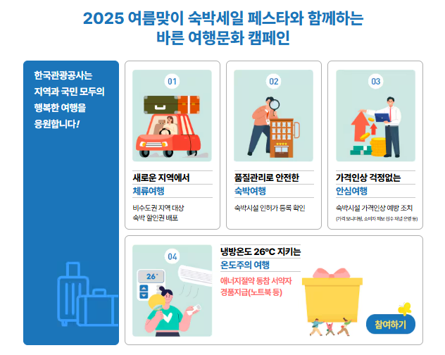 숙박세일페스타는 문화체육관광부와 한국관광공사가 주관하는 대표적인 국내 여행 활성화 캠페인입니다.