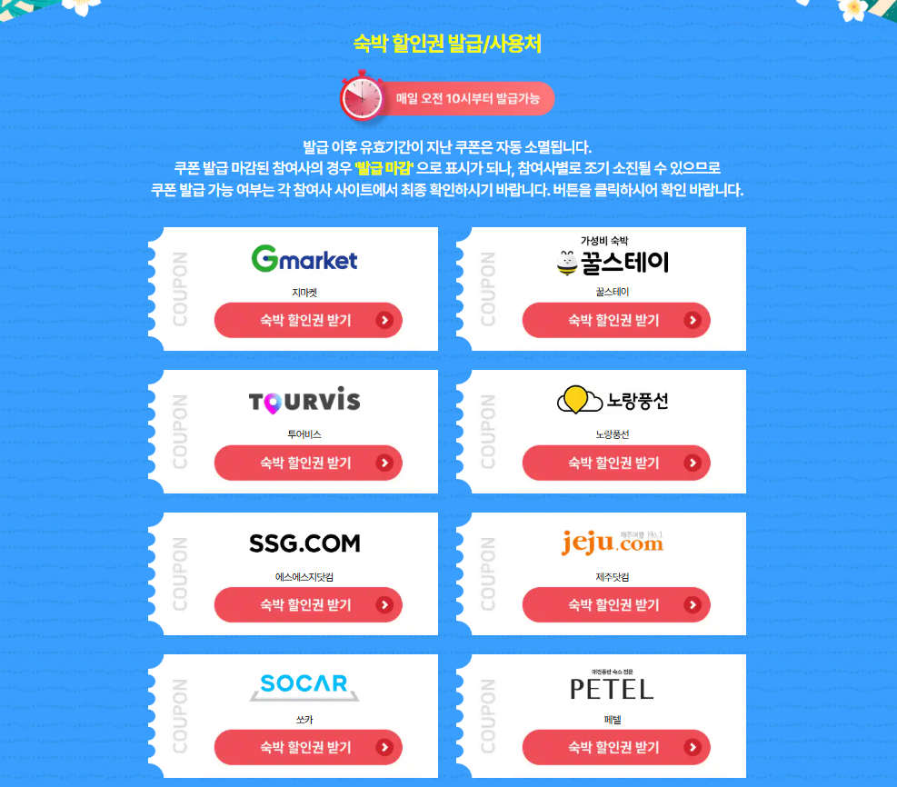 예약 가능 시점은 5월 중순부터 시작되며, 할인권은 숙소 직영 사이트, OTA(온라인여행사), 관광공사 지정 플랫폼에서 발급 받을 수 있습니다.